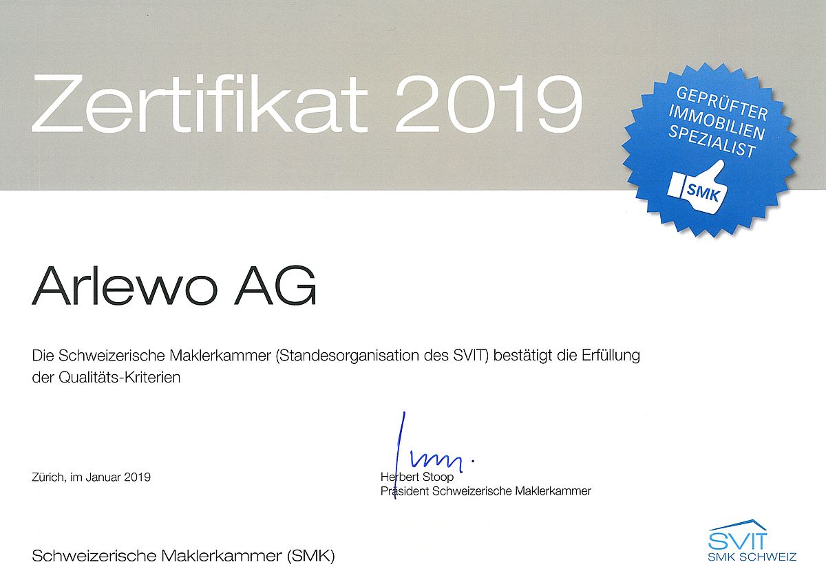 Alle vier Jahre wird die Einhaltung der Bedingungen der Schweizerischen Maklerkammer durch ein neutrales Audit überprüft und durch ein Zertifikat bestätigt.